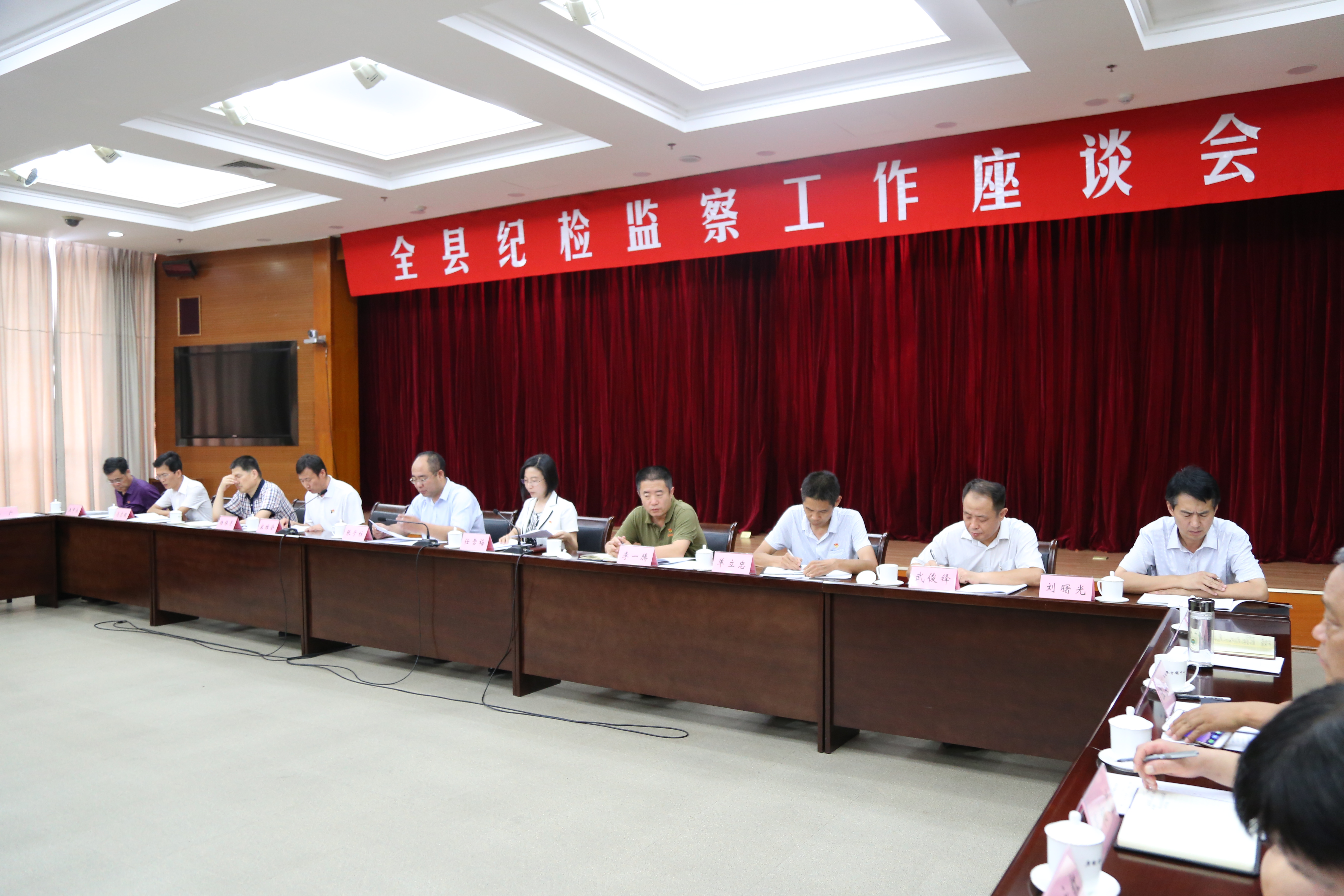 会议贯彻落实中央纪委、省市纪委近期召开的纪检监察工作座谈会精神,深入学习上级纪委对贯彻全面从严治党,深入推进党风廉政建设和反腐败斗争的新理念、新思路、新要求、新部署,对上半年全县纪检监察工作进行总结回顾,对下半年重点工作进行安排部署。